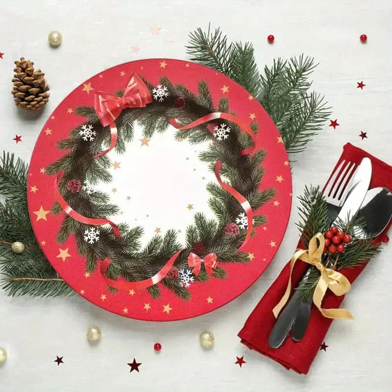 Uma mesa posta com itens natalinos como velas, flores, e acessórios temáticos cria instantaneamente uma atmosfera de festas e aconchego. O ambiente se torna acolhedor e perfeito para celebrar a data, estimulando um clima de festa e união.